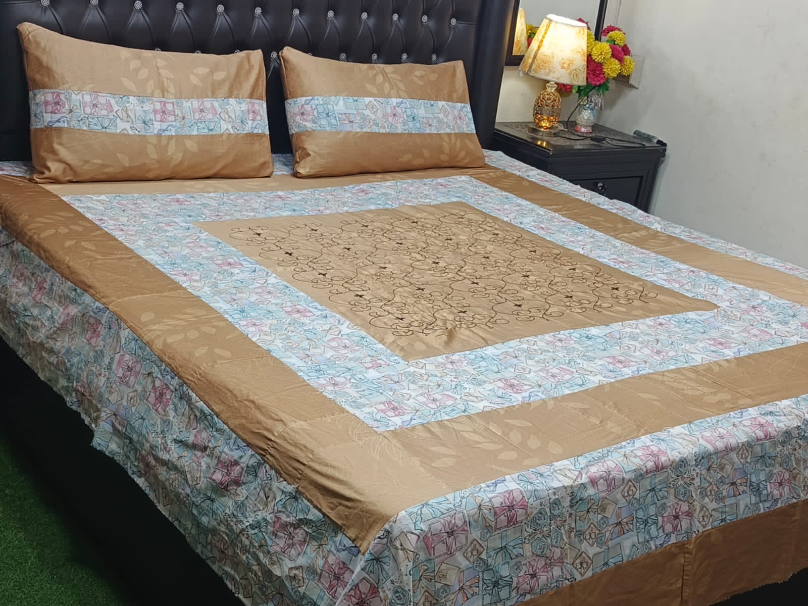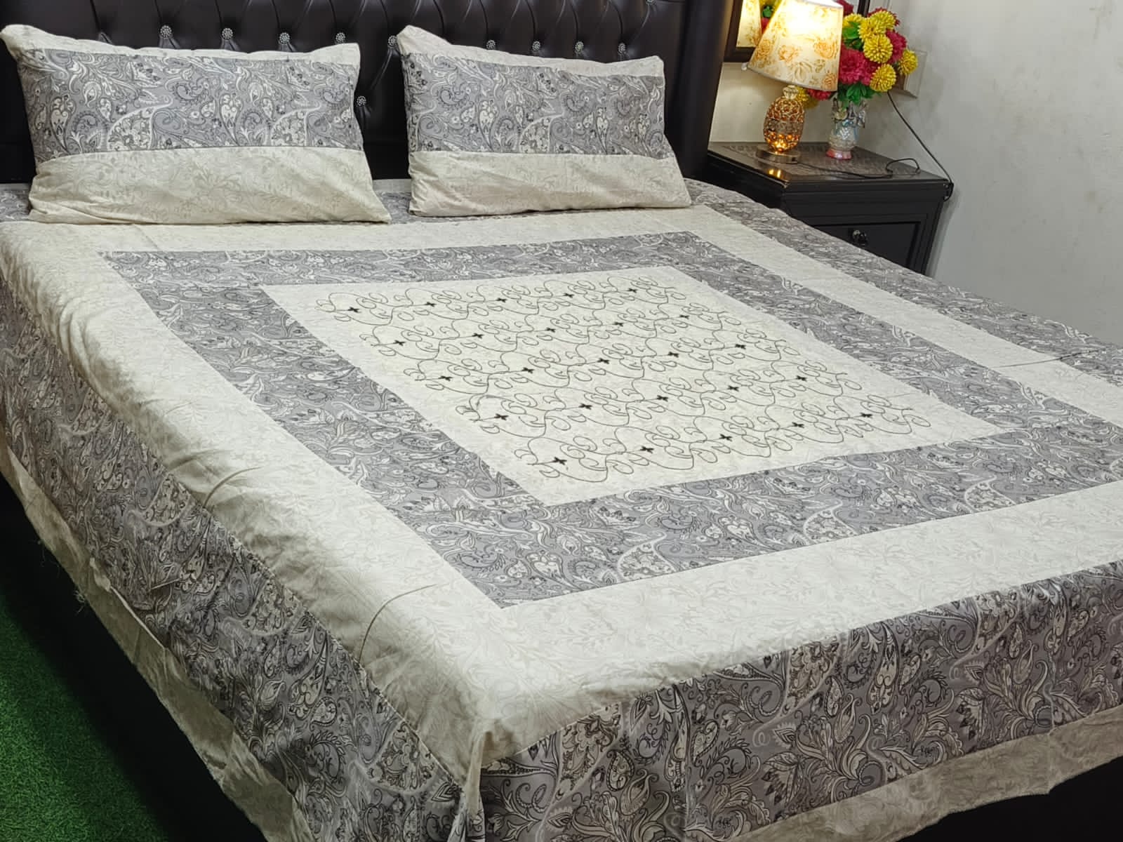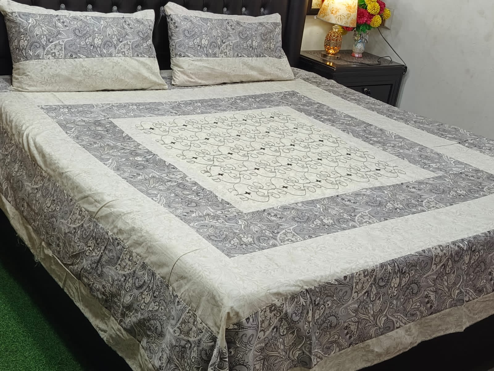 Elevate Your Bedroom with Our Exquisite Embroidered Patch Work King Size Bed Sheets